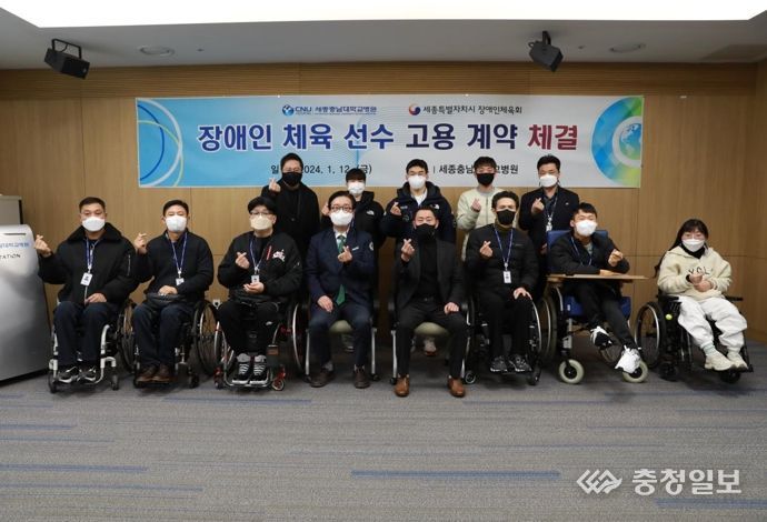 충청일보 김정운 기자 | 세종특별자치시장애인체육회 소속의 장애인체육 선수 8명이 세종충남대학교병원과 고용계약을 맺고 안정적인 체육활동 기반을 마련했다.
