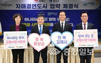충청일보 김문호 기자 | 16일 음성군과 김제시는 음성군청에서 우호 교류 협력 확대를 위한 지매결연을 맺었다.