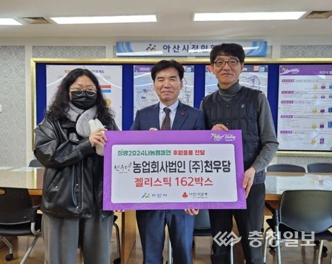 충청일보 박사현 기자 | ㈜천우당은 지난 16일 취약계층 지원을 위한 오메가3 젤리스틱 162박스를 아산시에 전달했다.
