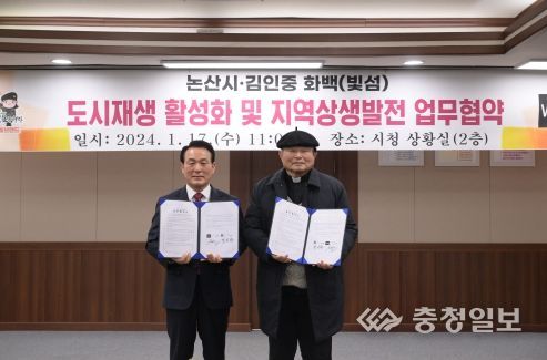 충청일보 박사현 기자 | 논산시는 17일 논산시청 상황실에서 빛섬(김인중 화백, KAIST 석좌교수)과 도시재생 및 지역상생발전 협약을 체결했다고 밝혔다.