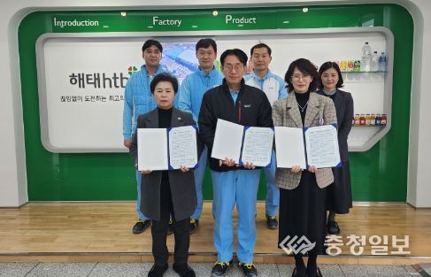 충청일보 박사현 기자 | 천안시 청룡동은 18일 행복키움지원단(단장 이문자), 해태htb(주) 천안공장(생산부문장 한강희)과 ‘상큼한 희망을 나누는 음료 후원’을 위한 업무협약을 체결했다고 밝혔다.