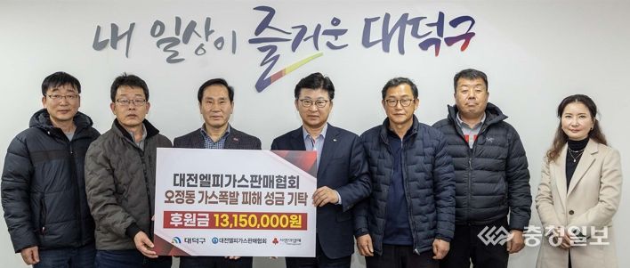최충규 대덕구청장은 “이웃사랑을 실천해 주신 대전엘피가스판매협회 회원분들의 따뜻한 마음에 진심으로 감사드린다”라며 “기탁해주신 성금은 사고 피해 주민을 위해 사용될 수 있도록 잘 전달하겠다”라고 말했다.