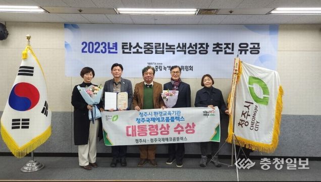 충청일보 김문호 기자 | 청주시는 ‘대통령직속 2050 탄소중립녹색성장위원회’가 주최한 ‘2023년 탄소중립 녹색성장 정부포상’ 단체부분에서 청주국제에코콤플렉스가 대통령상을 수상했다고 24일 밝혔다.