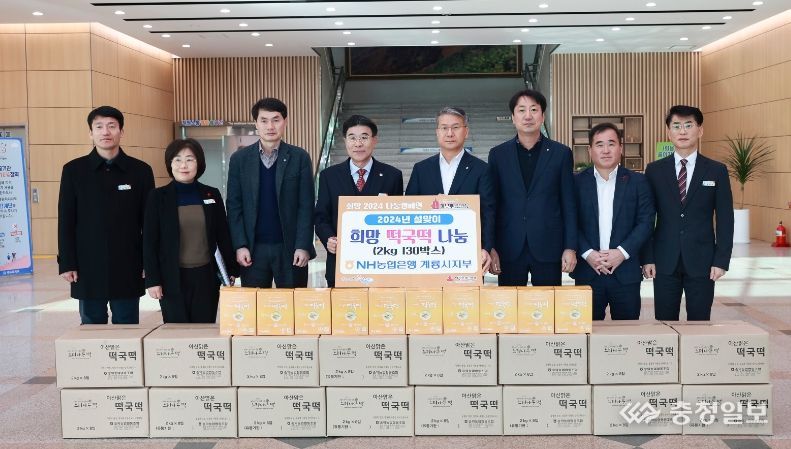 충청일보 박사현 기자 | 계룡시)는 25일 NH농협은행 계룡시지부(지부장 우창섭)와 ‘2024년 설맞이 희망 떡국떡 나눔행사’를 가졌다고 밝혔다.