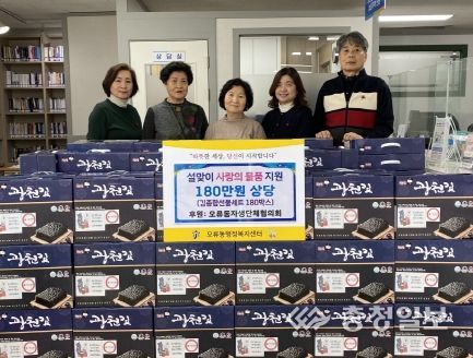 김길수 자생단체협의회장은 “오사운동으로 모인 성금은 모두가 어울려 사는 지역사회를 만드는 데 큰 힘이 되고 있다.”라며,“작은 선물이지만 따뜻한 명절 보내시길 바라며 앞으로도 많은 분들의 후원을 부탁드린다.”라고 말했다.