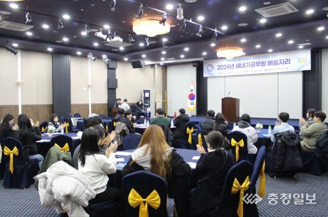 충청일보 박사현 기자 | 충청남도태안교육지원청은 지난 25일부터 26일까지 관내 새내기 공무원 23명을 대상으로 서산 베네키아 호텔과 백화초등학교에서 ‘2024년도 새내기 공무원 배움자리’를 실시한다.