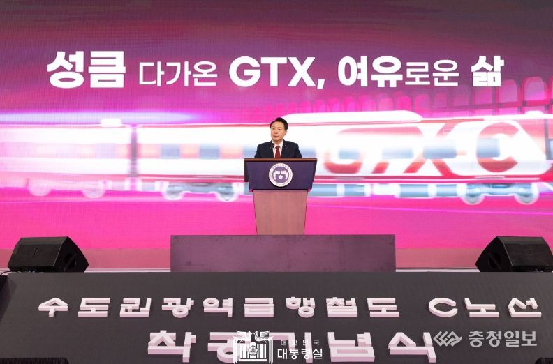 충청일보 김은경 기자 | 윤석열 대통령은 1월 25일 의정부시청 다목적체육관에서 열린 수도권광역급행철도(GTX) C노선 착공 기념식에 참석했다.