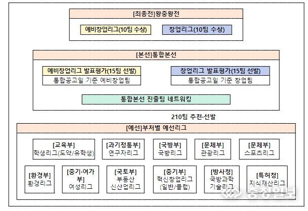 12월에는 최종 무대인 왕중왕전을 통해 올해 최고의 창업기업 10개사와 예비창업자 10개팀을 선정해 총 상금 14억원(최대 3억원), 대통령상·국무총리상 등을 시상하는 것으로 1년간의 여정이 마무리된다.