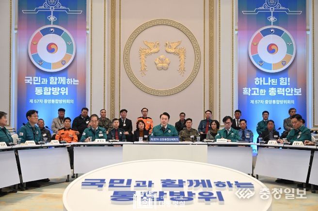 충청일보 김은경 기자 | 윤석열 대통령은 1월 31일 오전 영빈관에서 제57차 중앙통합방위회의를 주재했다. 회의에는 중앙정부와 지방자치단체, 국정원, 각 軍, 경찰청, 해양경찰청, 소방청 등의 주요 직위자와 민간 전문가 등 170여 명이 참석했습니다. 또한, 오늘 회의에는 최초로 국민참관단 11명도 함께했다.