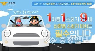충청일보 박사현 기자 | 태안소방서는 차량화재 발생 시 신속한 초기 대응으로 인명·재산 피해를 저감하기 위해 소화기 설치를 당부 했다.