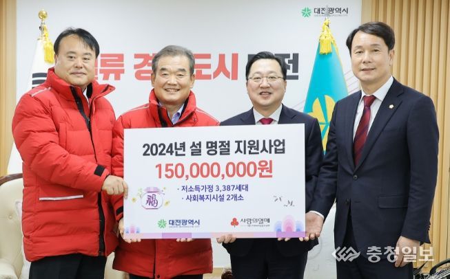충청일보 곽채영 기자 | 대전사회복지공동모금회(회장 유재욱)는 1일 이장우 대전시장을 만나 어려운 이웃이 따뜻한 설 명절을 나는 데 보탬이 되도록 1억 5천만 원을 기탁했다.