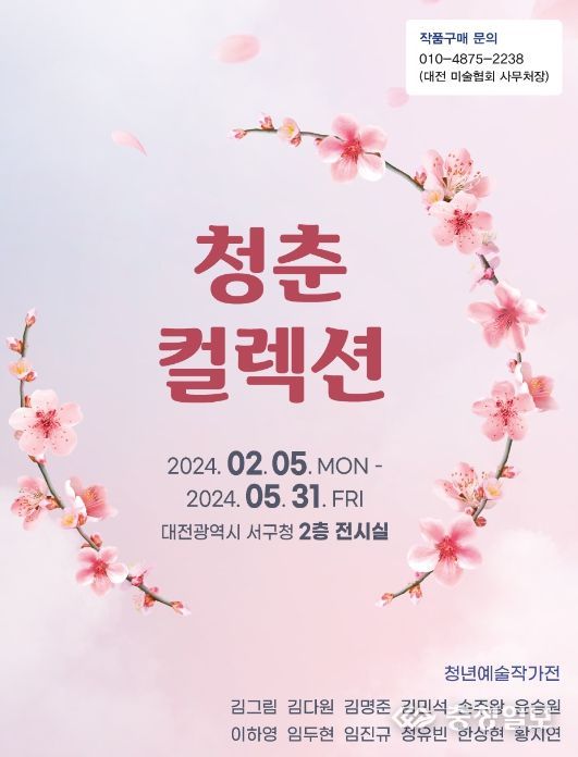충청일보 곽채영 기자 | 대전 서구는 2월 5일부터 5월 31일까지 서구청 2층 로비에서 2024년 1차 ‘청춘 컬렉션’ 청년 예술 작가전 행사를 개최한다.
