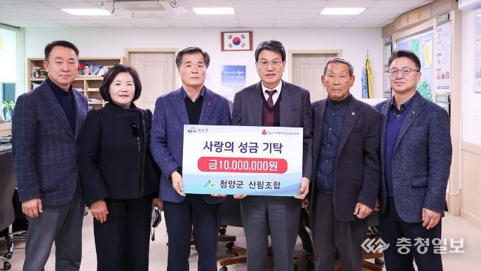 청양군 산림조합은 매년 수익금 일부를 지역 저소득층을 위해 기부하고 있으며, 이날 성금도 충남사회복지공동모금회를 통해 군내 저소득층에게 쓰일 예정이다.