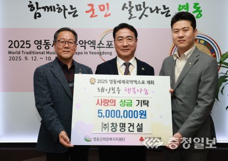 충청일보 김문호 기자 | ㈜창명건설은 지난 2일 영동군을 찾아 취약계층을 위한 성금 500만원을 전달했다.