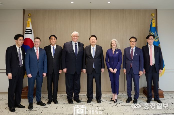 충청일보 김은경 기자 | 윤석열 대통령은 3월 6일 대통령실에서 존 햄리 美 전략국제문제연구소(CSIS) 회장을 포함한 CSIS 대표단을 접견하고, 한미관계 발전방안과 주요 지역 및 글로벌 정세에 대해 의견을 교환했다.