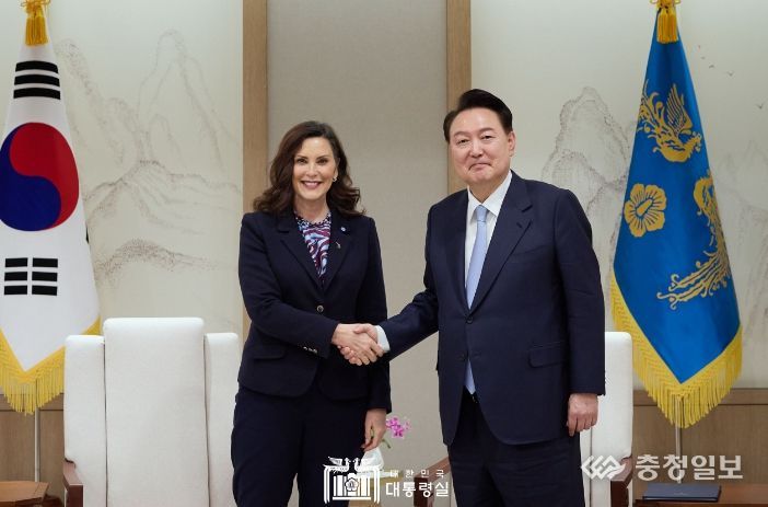 충청일보 김은경 기자 | 윤석열 대통령은 3월 7일 오후 방한 중인 '그레첸 위트머(Gretchen Whitmer)' 미국 미시간 주지사를 접견하고, 우리나라와 미시간州 간 협력 방안, 우리 진출 기업과 한인 사회에 대한 지원 등에 관해 의견을 교환했다.