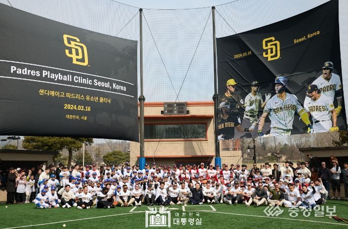충청일보 김은경 기자 | 윤석열 대통령은 3월 16일 서울 용산어린이정원 야구장에서 열린 메이저리거 참여 어린이 야구교실을 깜짝 방문해 유소년 야구선수들의 꿈과 미래를 응원했다.