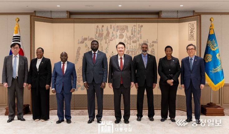 충청일보 김은경 기자 | 윤석열 대통령은 3월 19일 오후 대통령실에서 제3차 민주주의 정상회의 1일 차 장관급회의 참석차 방한한 아프리카 5개국 장·차관급 인사들을 접견했다.