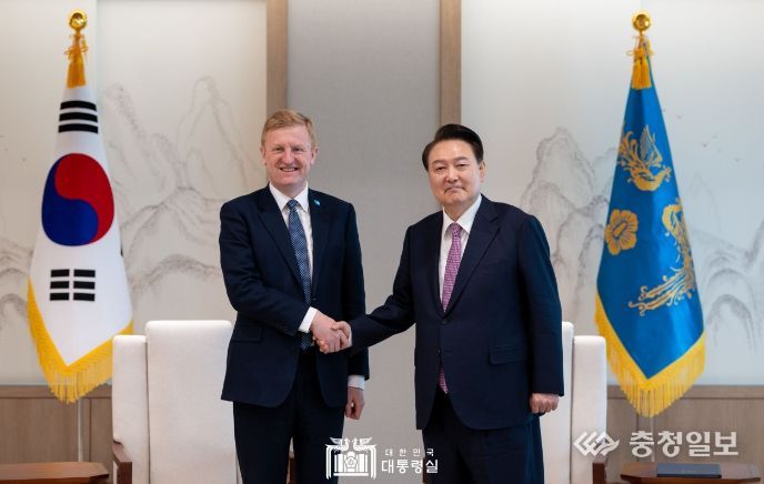 충청일보 김은경 기자 | 윤석열 대통령은 3월 20일 오전 제3차 민주주의 정상회의 참석차 방한한 '올리버 다우든(Oliver Dowden)' 영국 부총리를 접견했다.
