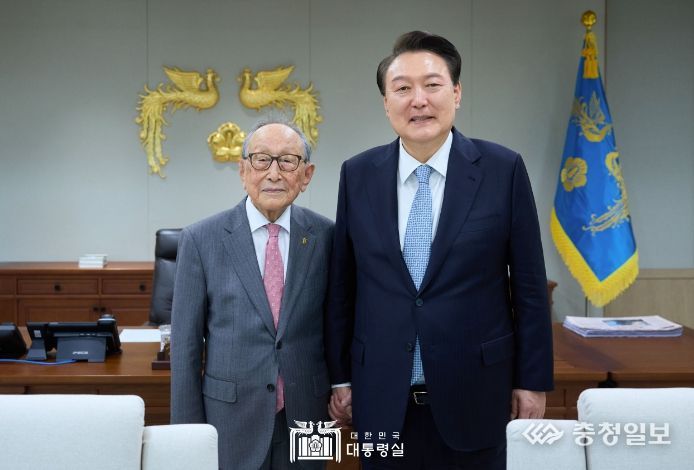 충청일보 김은경 기자 | 윤석열 대통령은 4월 3일 용산 대통령실에서 김형석 연세대학교 명예교수와 오찬을 함께했다. 대통령은 2021년 3월 검찰총장 퇴임 후 김 명예교수를 방문해 대화를 나눈 적이 있으며, 평소에도 김 명예교수의 저서 ‘백년을 살아보니’ 등을 읽고 존경심을 밝혀 왔다.