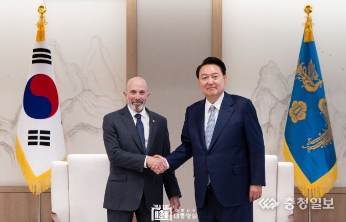 충청일보 김은경 기자 | 윤석열 대통령은 4월 18일 오후 '에반 그린버그(Evan Greenberg)' 미한 재계회의 위원장을 접견했다.