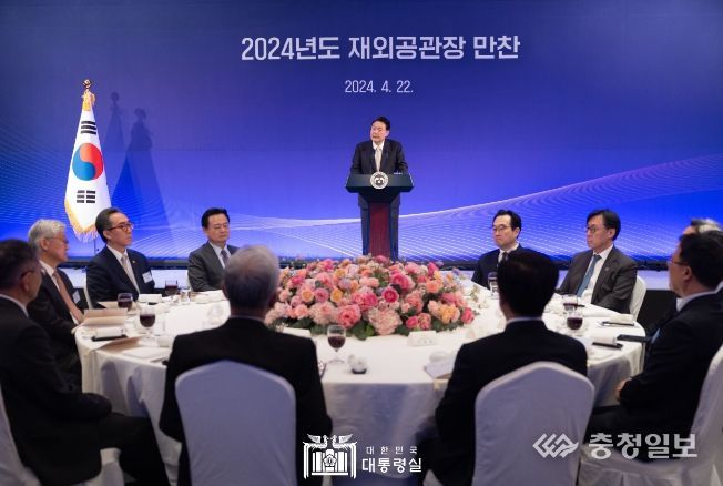 충청일보 김은경 기자 | 윤석열 대통령은 4월 22일 ‘2024년도 재외공관장 회의’*에 참석 중인 공관장들을 초청해 만찬을 가졌다.