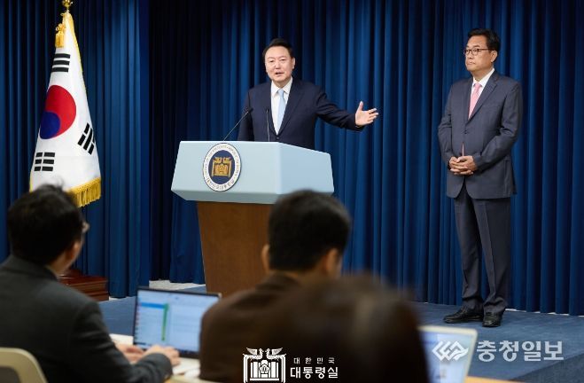 충청일보 김은경 기자 | 4월 22일 윤석열 대통령은 용산 대통령실에서 정진석 신임 비서실장 임명을 발표했다.