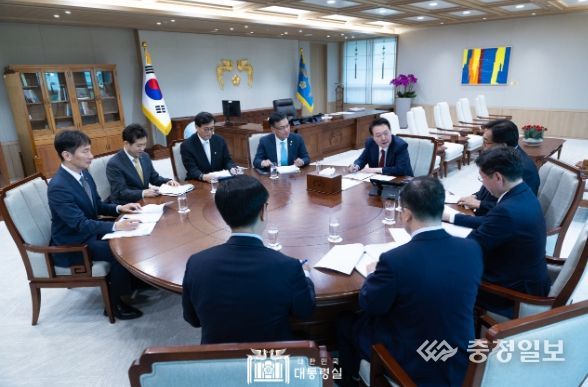 충청일보 김은경 기자 | 윤석열 대통령은 5월 9일 대통령실에서 '제1차 경제이슈점검회의'를 개최하고 부동산 PF, 기업 밸류업, 공매도 등 경제·금융 현안을 점검하고 대응 방향을 논의했다. 오늘 회의에는 최상목 경제부총리 겸 기획재정부 장관, 김주현 금융위원장, 이복현 금융감독원장이 참석했으며, 대통령실에서는 정진석 비서실장, 성태윤 정책실장, 박춘섭 경제수석이 참석했습니다. 이외에도 거시·금융 상황 점검을 위해 이창용 한국은행 총재도 참석했다.
