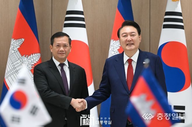 충청일보 김은경 기자 | 윤석열 대통령은 5월16일 오전 훈 마넷 캄보디아 총리와의 정상회담 말미에 상대국에 대한 각별한 인연에 대해서도 환담을 나눴다.