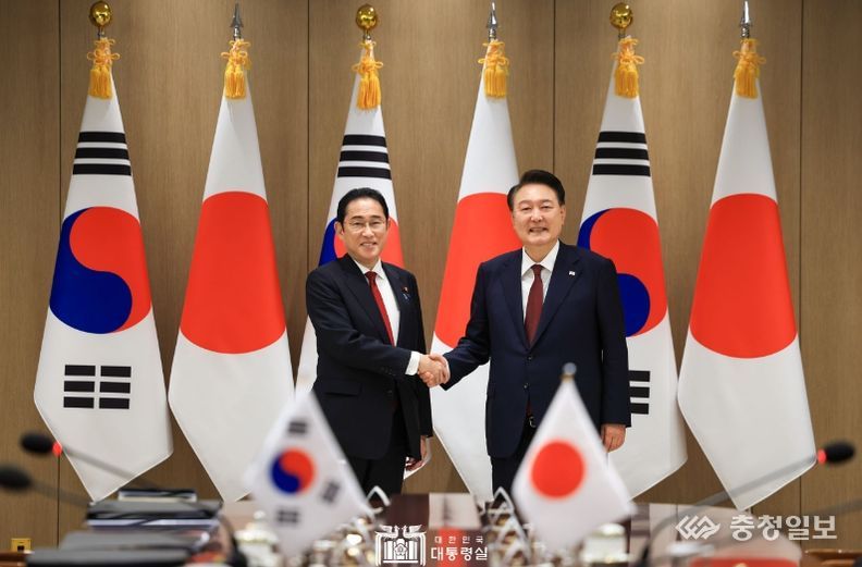 충청일보 김은경 기자 | 윤석열 대통령은 한일중 정상회의 참석차 방한한 '기시다 후미오(岸田文雄)' 일본 총리와 5월 26일 오후 16:35-17:25 약 50분간 한일 정상회담을 가졌다.
