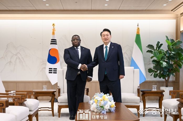 충청일보 김은경 기자 | 윤석열 대통령은 5월 31일 한-아프리카 정상회의(6/4~5) 참석을 위해 방한 중인 '줄리우스 마아다 비오(Julius Maada Bio)' 시에라리온 대통령과 오찬 회담을 갖고, 양국 관계 발전에 대해 의견을 교환했다.