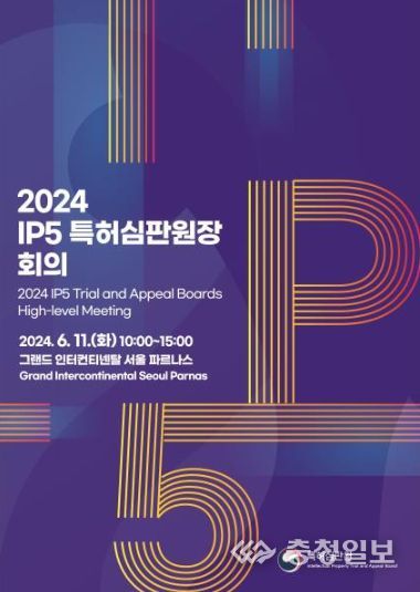 충청일보 김은경 기자 | 특허청 특허심판원은 6월 11일 10시 그랜드 인터컨티넨탈 서울 파르나스(서울 강남구)에서 ‘제5회 선진 5대(IP5) 특허심판원장 회의’를 개최하고 특허심판에서 인공지능(AI)의 활용과 대응방안 등을 논의했다고 밝혔다.