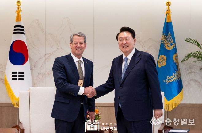충청일보 김은경 기자 | 윤석열 대통령은 6월 18일 오후 '브라이언 켐프(Brian Kemp)' 미국 조지아 주지사를 접견하고 한-조지아주 협력 관계와 한미동맹 발전 방향에 대해 의견을 교환했다.