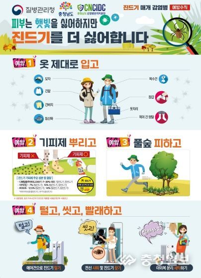이동유 도 복지보건국장은 “논·밭일, 등산 등 야외 활동 시 진드기 매개 감염병 예방수칙을 철저히 준수하고 증상 발생 시에는 즉시 의료기관을 방문해 치료받아야 한다”라면서 “도내 첫 사망자가 발생한 만큼 도민 대상 예방 홍보·교육을 더욱 강화할 것”이라고 말했다.