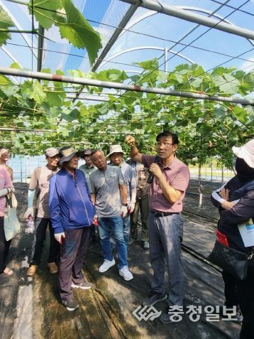 충청일보 김문호 기자 | 충북농업기술원은 충북형 도시농부의 안정적 정착과 원활한 농작업 인력 투입을 위해 도시농부 경력자 40명을 대상으로 26일 옥천 소재 포도연구소에서 포도 농작업 현장 실습형 심화교육을 실시했다.