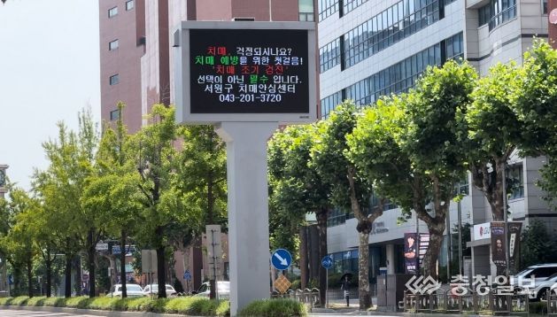 충청일보 김문호 기자 | 청주시 서원보건소 치매안심센터는 외부 대형 전광판을 활용해 치매조기검진을 적극 홍보하고 있다고 2일 밝혔다.
