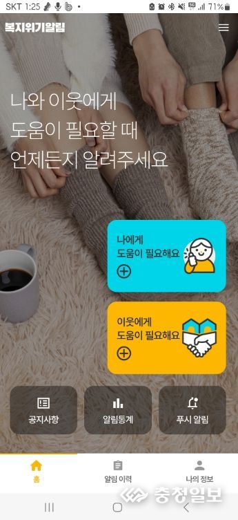 충청일보 김문호 기자 | 옥천군은 모바일 애플리케이션(앱)을 통해 신고하는‘복지위기 알림서비스’를 시행한다고 4일 밝혔다.