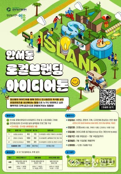 충청일보 박사현 기자 | 천안시는 천안청년센터 이음이 오는 14일까지 ‘안서동 로컬 브랜딩 아이디어톤’ 참여자를 모집한다고 밝혔다.