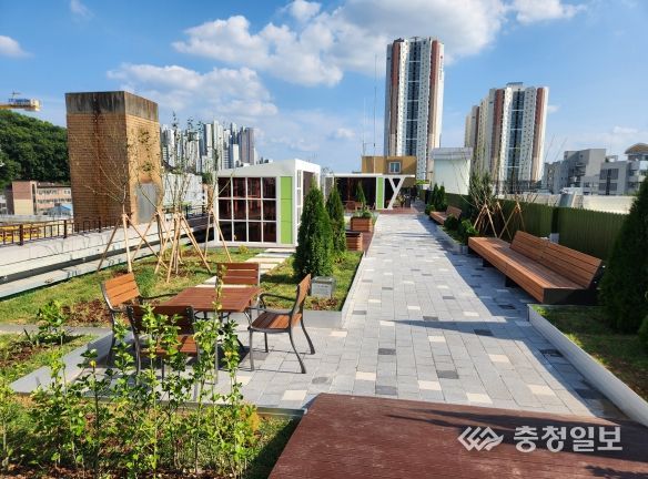 충청일보 김문호 기자 | 충북도는 버려졌던 유휴공간인 옥상을 업사이클링하여 도심 속 푸른 휴게공간인 하늘정원을 완성하여 8일 시범운영에 들어갔다.