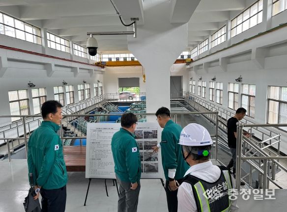 우선 지난해 수해가 있었던 오송읍 석화 제2배수장 및 제방을 점검하여 복구시설이 완벽하게 보수됐는지 확인했다.