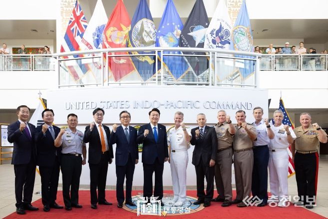 충청일보 김은경 기자 | 윤석열 대통령은 오늘(현지시각 7. 9, 화) 오전 미국 하와이주에 위치한 인도태평양사령부(이하 인태사)를 방문했다. 우리 대통령이 인태사를 방문한 것은 처음이며, 지난 '95년에는 김영삼 前 대통령이 당시 태평양사령부를 방문한 바 있다.