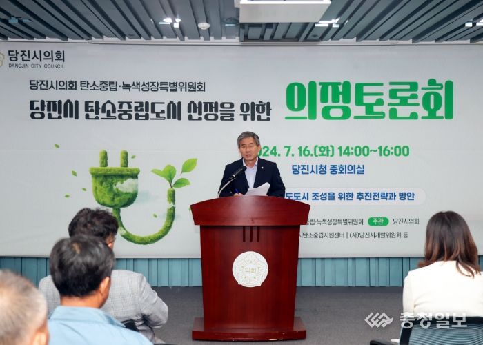 충청일보 박사현 기자 | 당진시의회 탄소중립·녹색성장특별위원회는 지난 16일, 당진시청 중회의실에서 당진시 탄소중립 선도도시 선정을 위한 추진 전략과 방안을 주제로 의정토론회를 개최했다.