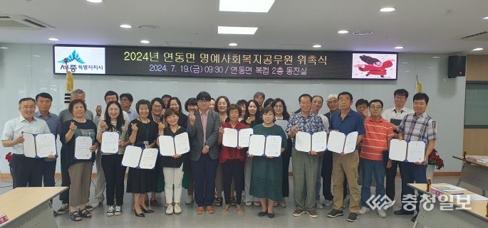 충청일보 김정운 기자 | 세종특별자치시 연동면이 지난 19일 연동면 명예사회복지공무원 위촉식을 진행했다.