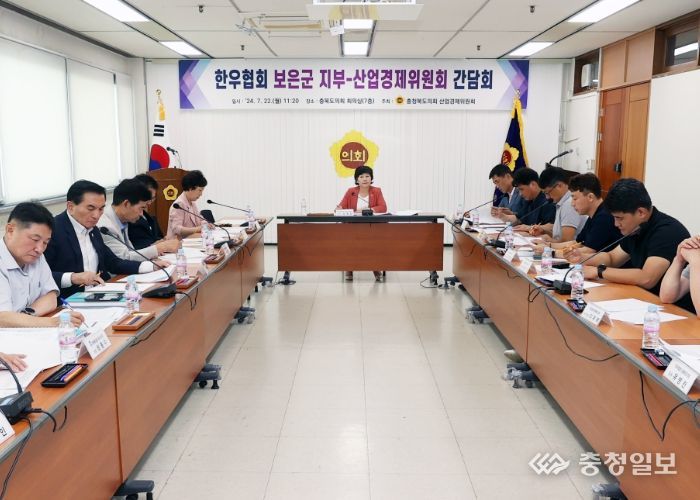충청일보 김문호 기자 | 충북도의회 산업경제위원회는 22일 ‘한우협회 보은군 지부-산업경제위원회 간담회’를 갖고 한우산업 위기 대책 마련 등을 논의했다.