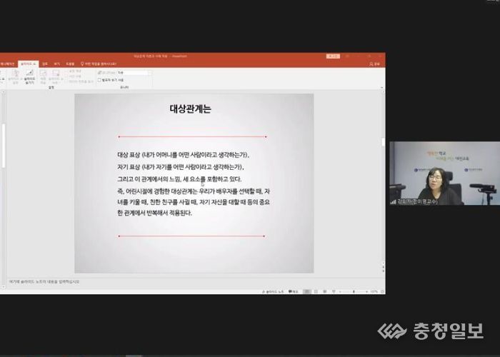 충청일보 곽채영 기자 | 대전광역시교육청은 7월 22일부터 23일까지 온라인화상회의를 이용한 비대면 연수를 통해 학생상담자원봉사자 100여 명을 대상으로 상담 역량 강화를 위한 상반기 보수교육을 실시한다고 밝혔다.