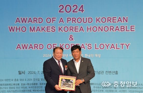 충청일보 박사현 기자 | 산시의회 이태모 의원이 26일 서울 용산구 백범김구기념관 컨벤션홀에서 열린‘2024한국을 빛낸 자랑스러운 한국인 대상’시상식에서‘2024의정발전공로대상’을 수상했다.