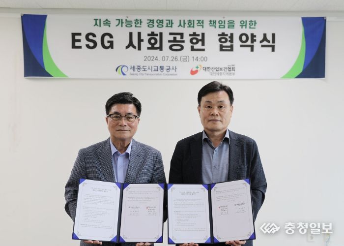 충청일보 김정운 기자 | 세종도시교통공사와 대한산업보건협회 대전세종지역본부는 지난 26일 ESG경영과 지역사회공헌 강화를 위해 업무협약을 체결했다고 밝혔다.