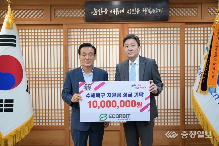 충청일보 박사현 기자 | 에코비트워터(대표이사 김인석)가 지난 2일 논산시청을 방문해 수재의연금 1천만원을 기탁했다.