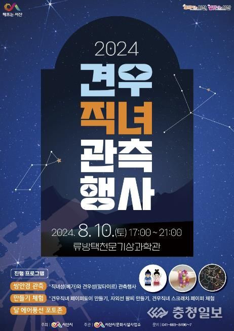 충청일보 박사현 기자 | 충남 서산시는 8월 10일 칠월칠석을 맞아 류방택천문기상과학관 일원에서 ‘견우직녀’ 관측행사를 개최한다고 6일 밝혔다.