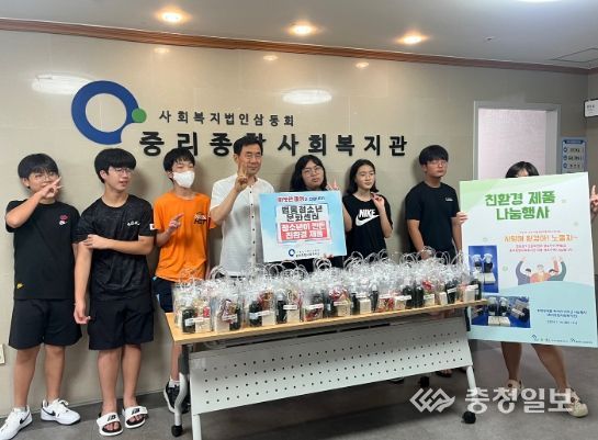 이번 나눔 행사는 대덕구 산하 기관인 법동청소년문화센터 늘해랑 청소년방과후아카데미에서 실시했으며, 청소년들이 천연 비누 및 액체세제 등을 직접 만들어 복지관을 이용하는 어르신들에게 전달하는 시간을 가졌다.